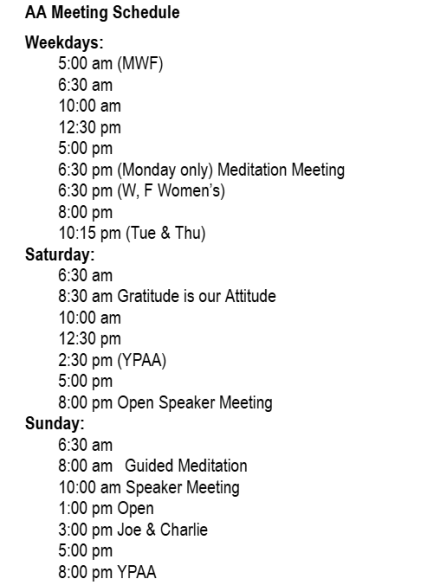 ** currently on zoom only @ 6:30pm ** 7:00 pm Monday Night Spiritual Big Book
